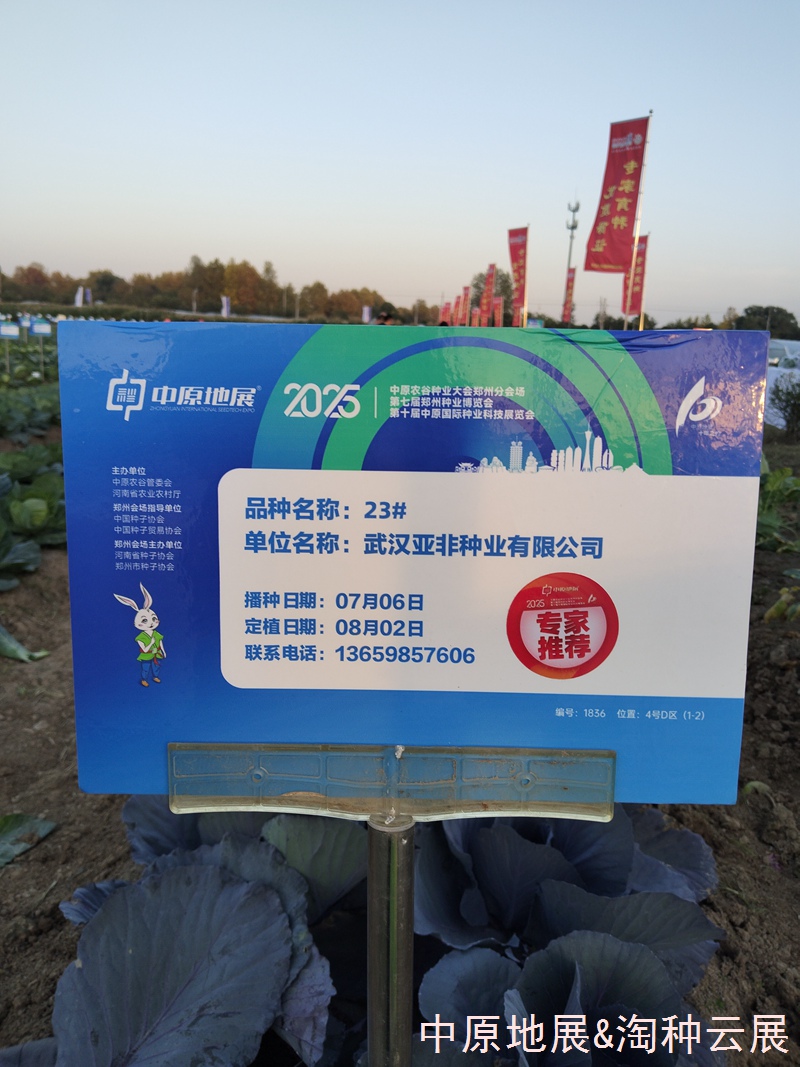 贵单位参展的23#甘蓝,经专家推荐品种评选委员会现场综合考评,被评为2025年第七届郑州种业博览会暨第十届中原国际种业科技展览会“专家推荐品种”!